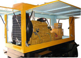 九台柴油发电机组/移动柴油发电机组设计独具创新,机动性高、重心低、制动安全、制造精良、外形美观。 九台拖车车架采用槽梁焊接成框架结构,节点选择合理、强度高、刚性好;同时装有钢板弹簧悬架结构;拖车采用高度可调节插销式牵引架,适用于各种高度牵引车;采用圆形钢管焊接直通式车轴,结构紧凑,安全可靠;车架四角设有机械式支撑装置,配备惯性行车制动、驻车制动和脱离应急制动,确保机组在各种状况下的安全;车架前端设有支撑轮,具备承受机组垂直载荷的功能的同时还具备导向功能;整车配备转向和刹车指示灯,同时装有尾灯标准插头